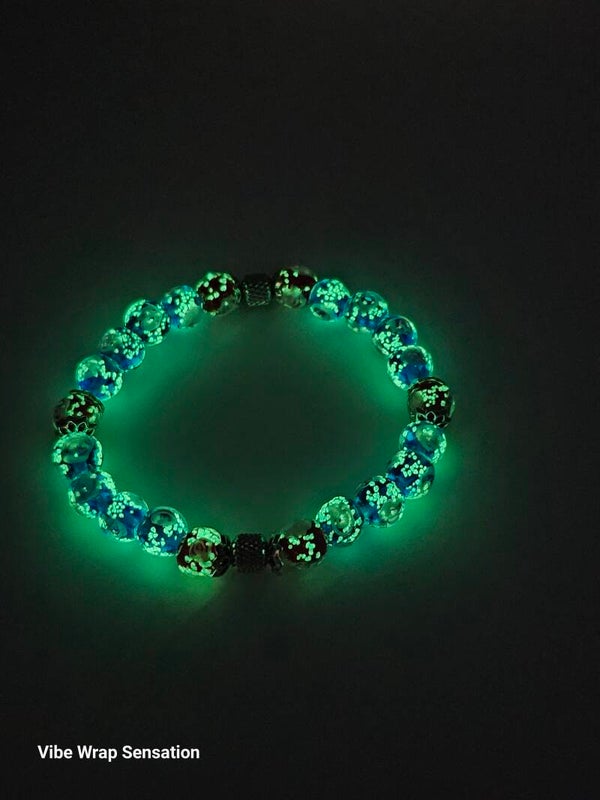 Handcrafted with premium 8 \text{ mm} lampwork glass beads, this bracelet is the definition of day-to-night style. By day, it offers refined elegance. In the dark, the unique glass beads glow softly, casting a beautiful luminescence.