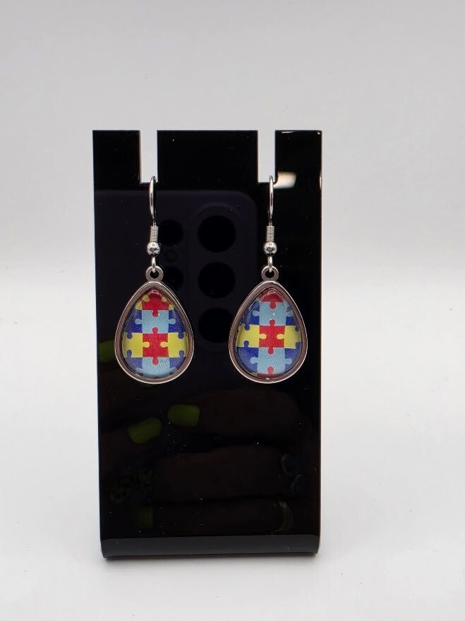 Traditional Autism Awareness Teardrop Dangle Earrings