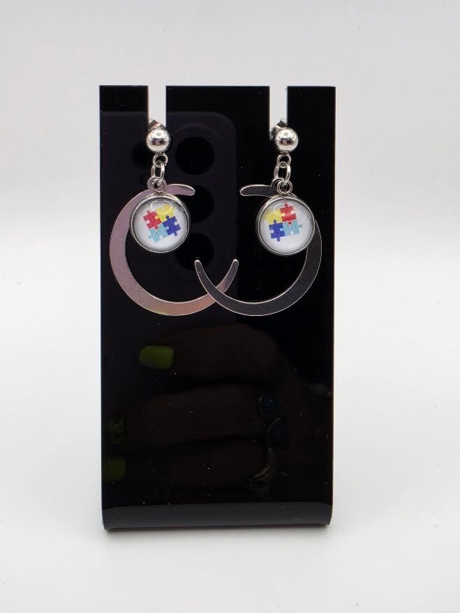 Show your support with these vibrant, handmade puzzle piece earrings. These dangles feature the traditional colors and pattern that have served as a hallmark of autism awareness for many years. They are a wonderful choice for those who want to honor the history of advocacy and start supportive conversations in their community.