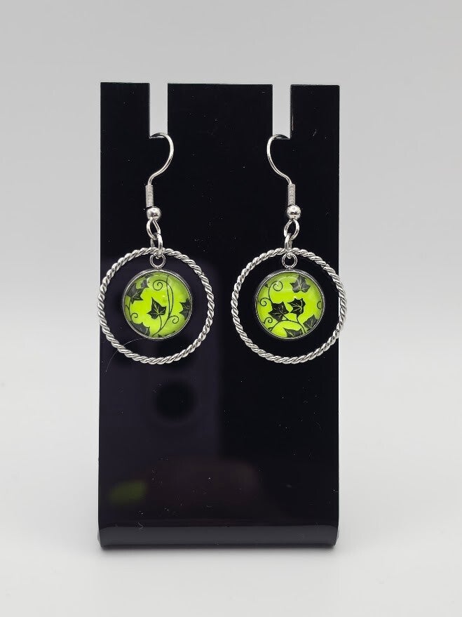 Go neon with these nature-inspired dangles from Vibe Wrap Sensation. These earrings feature a crisp ivy leaf pattern set against a vibrant, lime-green background.