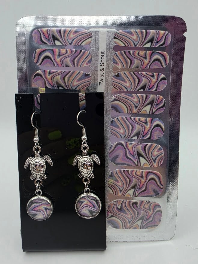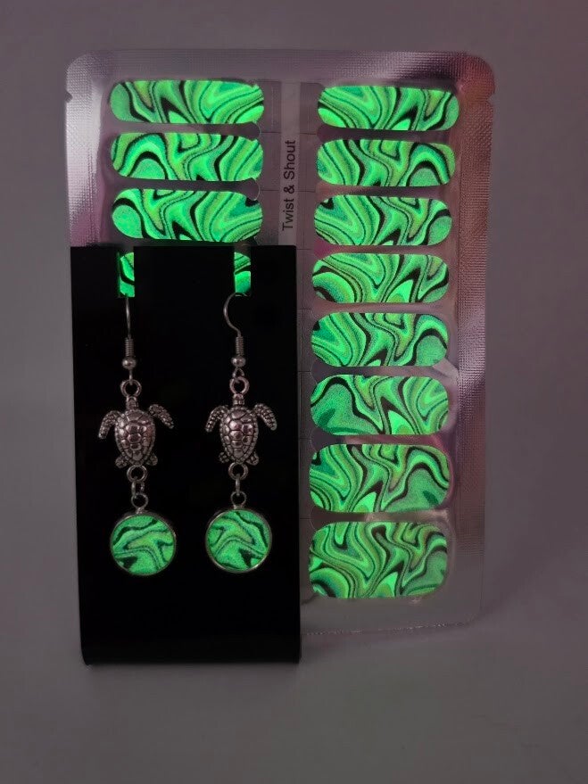 Twist & Shout" Glow-in-the-Dark Set – Turtle Earrings & Nail Wrap Bundle