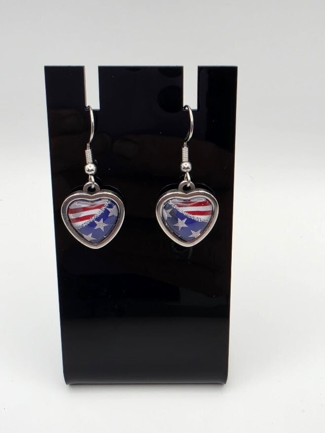 Stars & Stripes" Heart Dangle Earrings– 100% Stainless Steel – Vibe Wrap Sensation